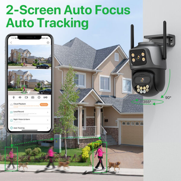 Cámara de Seguridad WiFi Doble Lente con Visión Nocturna en Color y Seguimiento Automático