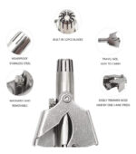 Diseño Eficiente: Este cortador de pelo está diseñado específicamente para eliminar el vello no deseado en la nariz de manera segura y efectiva.Inclusión de Cepillo: Incluye un cepillito para facilitar la limpieza del cortador, garantizando que se mantenga en óptimas condiciones de higiene.Resistente al Agua: Puede mojarse para su limpieza, permitiendo una higiene más profunda y asegurando su durabilidad.Uso Sencillo: Su diseño ergonómico permite un manejo fácil y cómodo, ideal para cualquier usuario.Especificaciones: