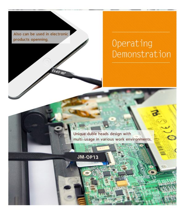 Herramienta de apertura de alta precisión, diseñada especialmente para técnicos y aficionados que necesitan desmontar dispositivos electrónicos sin dañarlos. Su diseño ergonómico y materiales de calidad lo convierten en un accesorio confiable para reparaciones delicadas.