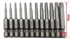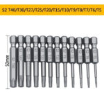 Variedad de Tamaños: Incluye 12 tamaños diferentes de puntas Torx, que van desde T5 hasta T40, permitiendo una amplia gama de aplicaciones.Longitud de 50mm: Cada punta tiene una longitud total de 50 mm (2 pulgadas), ideal para acceder a lugares de difícil alcance.Compatible con Vástagos de 1/4 Pulgada: El tipo de vástago es de 6,35mm (1/4 pulgadas), adecuado para destornilladores eléctricos, destornilladores manuales, taladros eléctricos y más.Material de Alta Calidad: Fabricadas en acero de aleación S2, estas brocas ofrecen alta dureza y durabilidad, ideales para uso intensivo.Diseño Magnético: Todas las brocas, excepto T5, T6 y T8, cuentan con un orificio central magnético que permite fijarlas firmemente en los destornilladores, asegurando un agarre seguro y eficiente.Ideal para: Reparaciones de celulares, equipos electrónicos y tareas de bricolaje en general.