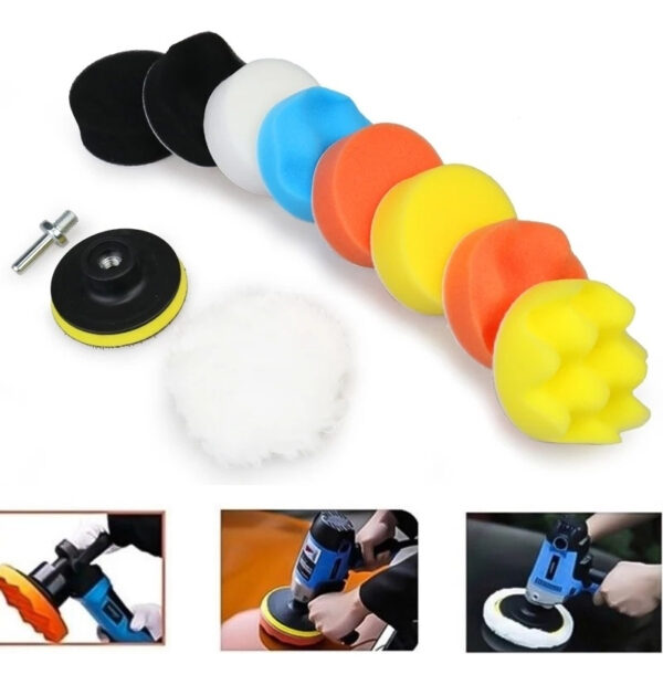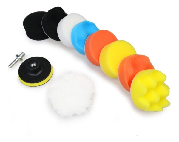 Compatibilidad: Diseñadas para conectarse fácilmente a un taladro estándar, estas almohadillas son ideales para trabajos de pulido en diversas superficies.Variedad de Almohadillas: El kit incluye una selección completa de 11 piezas para satisfacer diferentes necesidades de pulido:4 Almohadillas Amortiguadoras de Espuma Planas: Perfectas para lograr un acabado liso y uniforme en superficies planas.4 Almohadillas Amortiguadoras de Espuma Ondulada: Diseñadas para pulido en áreas más difíciles y curvas, garantizando un mejor contacto con la superficie.1 Almohadilla Amortiguadora de Lana: Ideal para un acabado final brillante, proporcionando un pulido más fino.1 Almohadilla de Respaldo: Permite fijar las almohadillas al taladro de forma segura y estable.1 Adaptador de Taladro M10: Facilita la conexión de las almohadillas al taladro, asegurando un uso conveniente.Ideal para: Pulido de automóviles, muebles, metales y otras superficies que requieren un acabado perfecto. Estas almohadillas son una herramienta esencial para aficionados al bricolaje y profesionales por igual.