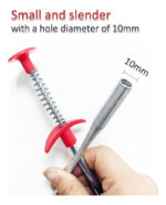 Uso Versátil: Ideal para limpiar baños, cocinas, lavabos, bañeras y tuberías. Eficaz en la eliminación de obstrucciones en drenajes, alcantarillas y otros lugares propensos a bloqueos.Diseño Multidental: Las serpientes de drenaje con dientes múltiples están diseñadas para atrapar eficazmente el cabello, restos de comida y otros bloqueos, facilitando la limpieza.Facilidad de Uso: Su diseño permite capturar obstrucciones sólidas de manera sencilla, enganchando fácilmente pelos y residuos, lo que hace que la limpieza sea más eficiente.Longitud Óptima: Con una longitud de 62 cm (24.4 pulgadas), es lo suficientemente larga para alcanzar tuberías profundas. Su diseño con bucle permite sujetar y extraer fácilmente los bloqueos.Especificaciones: