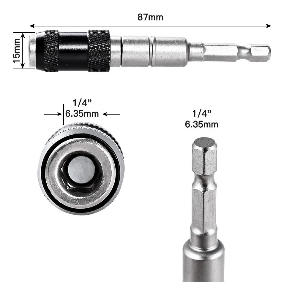 Punta Magnetica Derecha Y Angular Para Taladro 20 Grados 1/4