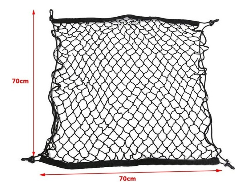 Diseño Práctico: Esta red de sujeción está diseñada para mantener su equipaje y otros objetos en su lugar dentro del maletero de su auto, evitando movimientos indeseados durante el transporte.4 Ganchos de Agarre: Incluye cuatro ganchos de agarre que facilitan la instalación y aseguran que la red se mantenga firme y estable.Excelente Elasticidad: Fabricada con materiales de alta calidad que ofrecen una gran elasticidad, permitiendo que la red se adapte a diferentes tamaños y formas de carga.Dimensiones Generosas: Con medidas de 70 x 70 centímetros, proporciona un amplio espacio para asegurar su equipaje, herramientas o cualquier otro objeto que necesite transportar.Ideal para: Viajes en auto, deportes, camping y cualquier actividad que requiera llevar equipaje adicional de manera segura y ordenada.