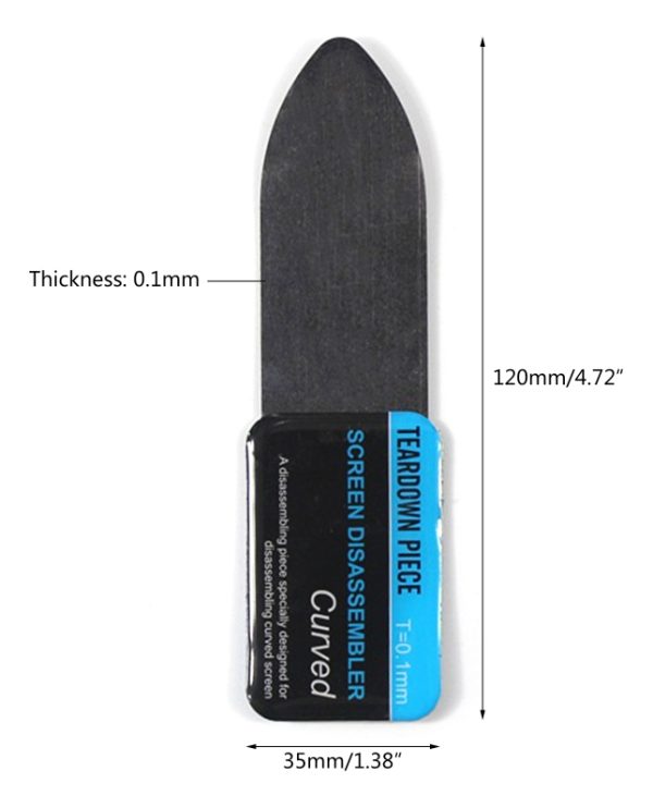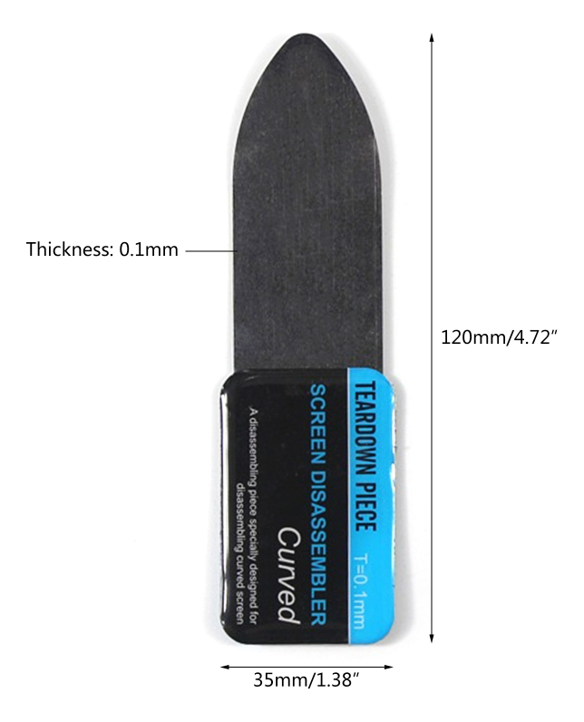Este separador es una herramienta indispensable para técnicos y aficionados en la reparación de celulares. Su diseño ultrafino de 0.1 mm de espesor permite deslizarse fácilmente entre el marco y la pantalla del dispositivo, ayudando a separar el vidrio sin causar daños.