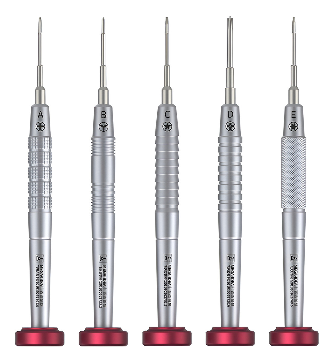 Variedad de puntas: incluye destornilladores tipo Phillips, Y, y otros especiales usados en electrónica.