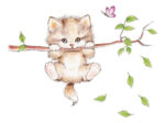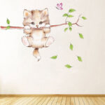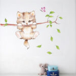 Pegatinas de pared con ramas colgantes de gato para habitación de niños, calcomanías para pared de animales, Mural de decoración para guardería