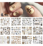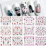12 hojas de pegatinas de transferencia de agua (tatuajes al agua para uñas)Variedad de diseños únicos con 180 a 240 unidades por juegoCaracterísticas: