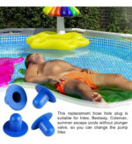 Base: 2.3 pulgadas.Diámetro interno del émbolo: 1.14 pulgadas.Diámetro externo del émbolo: 0.9 pulgadas.Altura/Profundidad: 1.55 pulgadas.Contenido del Paquete:Incluye 2 tapones para piscina, ideales para asegurar un cierre hermético y prevenir fugas de agua.